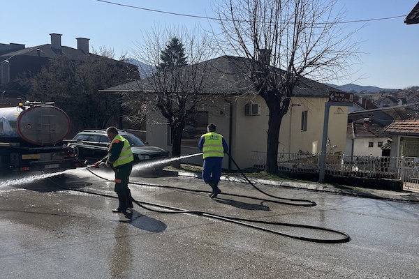 Javno komunalno preduzeće „Gornji Milanovac“ danas vrši pranje Solunske ulice, Natalije Carević i Đenerala Milića.…