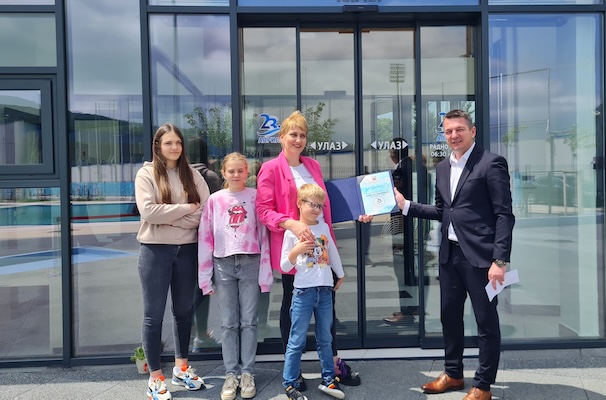Predsednik opštine Dejan Kovačević, je Ani, ponosnoj kumi, majci troje dece, uručio zahvalnicu kao i propusnice, a potom su zajedno obišli bazen.