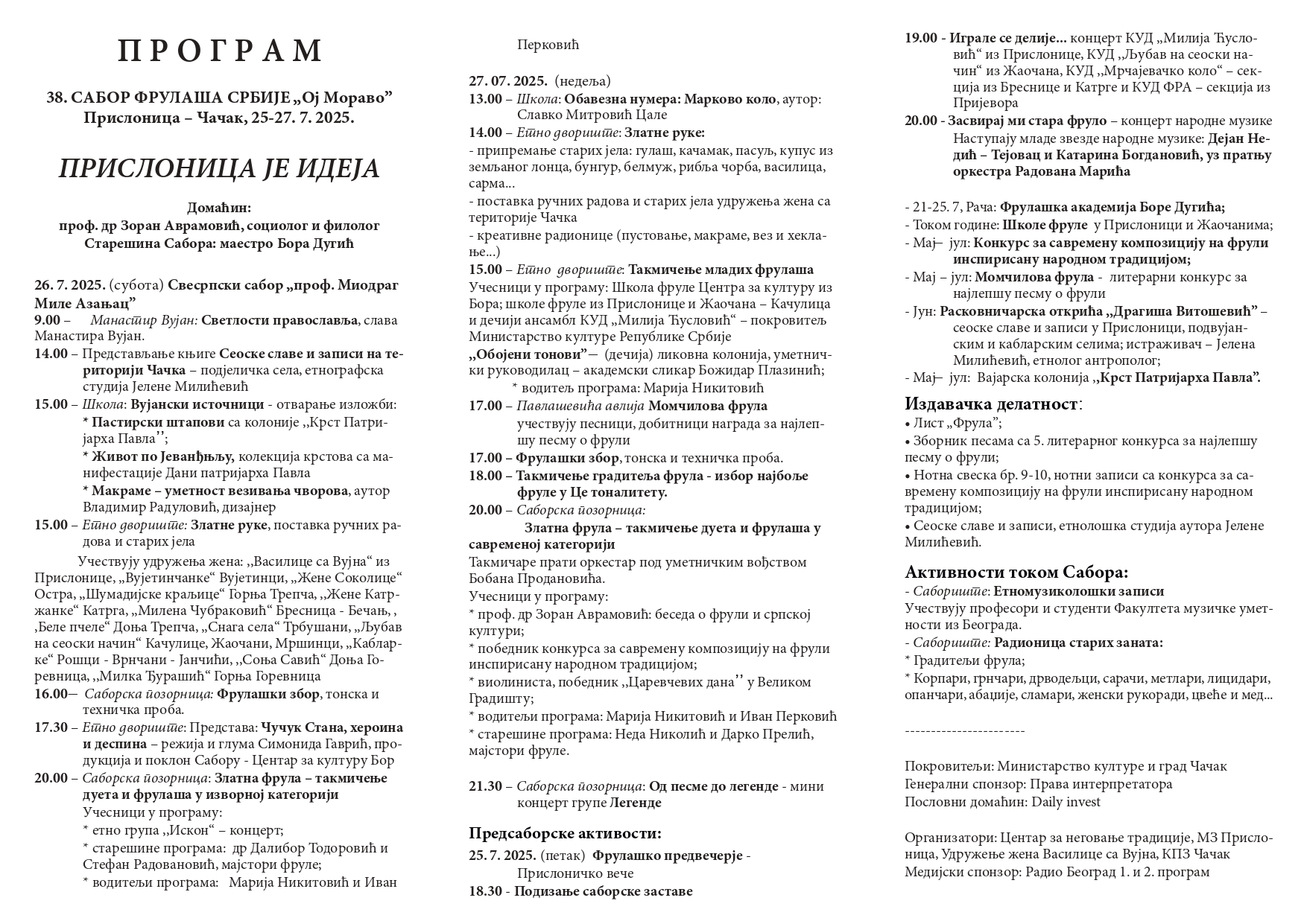 Od 25. do 27. jula 2025. godine održaće se 38. po redu Sabor frulaša Srbije ,,Oj Moravo“ u Pislonici.