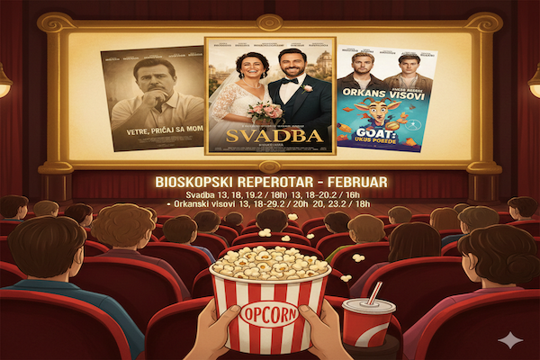 Ljubitelje filma u februaru očekuje raznovrstan program – od iščekivane komedije „Svadba“ sa Draganom Bjelogrlićem, preko holivudskih „Orkanskih visova“, do emotivnih domaćih drama i animiranih avantura za najmlađe.