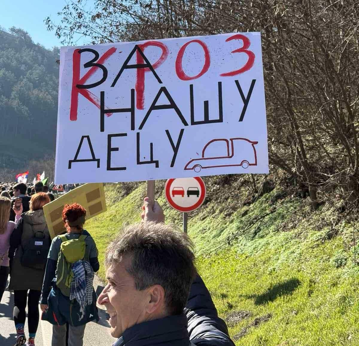 – Pokret za Čačak je malo kasnio, krenuli smo u pola devet umesto u 8 sati. Sa nama prosvetarima krenulo je mnogo više ljudi nego što smo očekivali, na Trgu kneza Mihaila u Gornjem Milanovcu pridružili su nam se i građani koji su sa nama krenuli. Prva planirana pauza biće u Brđanima. Imamo i pratnju policije, na čelu i na kraju kolone je po jedno policijsko vozilo. Trenutno smo kod kružnog toka na izlazu iz Milanovca – kaže za GMinfo nastavnica Jelena.