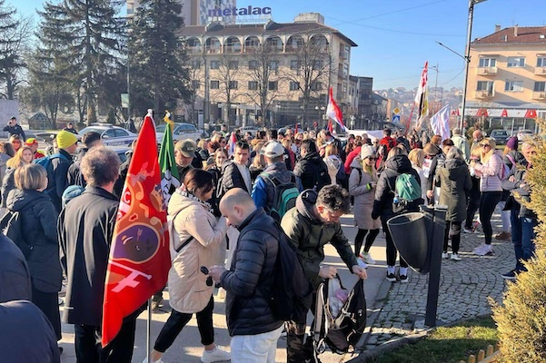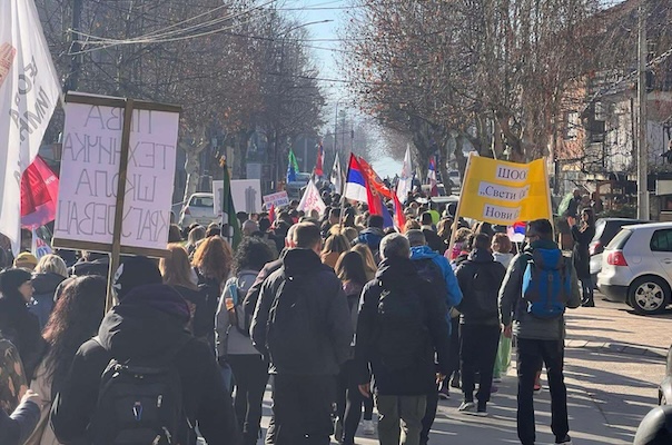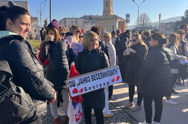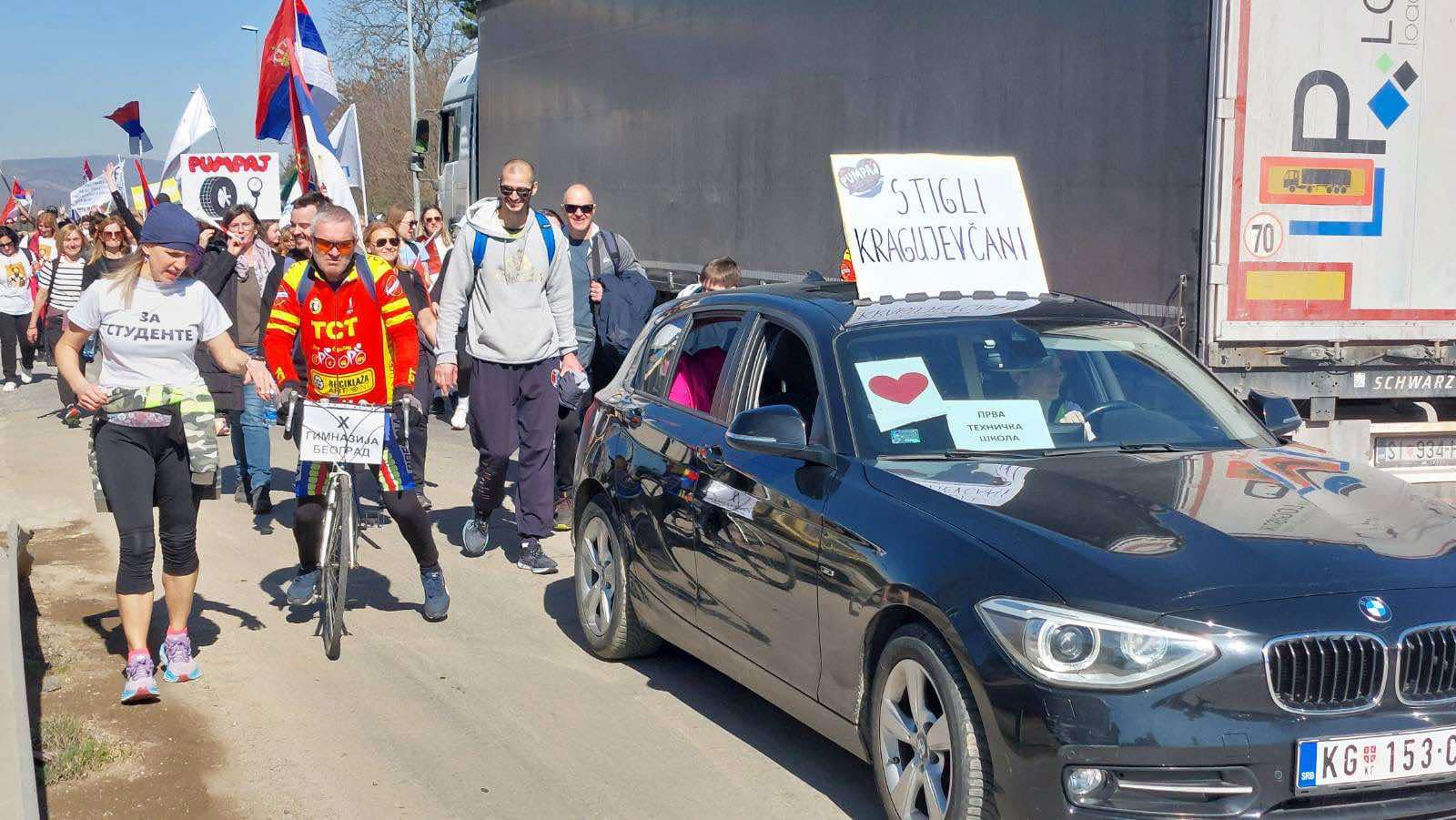 Prosvetari, koji su krenuli iz Gornjeg Milanovca sa kolegama iz Beograda i Kragujevca, krenuli jutros oko 8:30, susreli su se sa kolegama iz Kraljeva a zatim zajedno uputili ka Čačku.