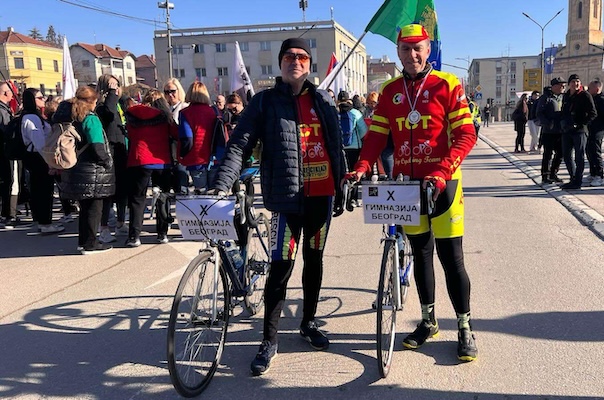 – U Brđanima smo napravili prvu pauzu koju smo iskoristili da se okrepimo, poslužimo i preobujemo. Ovde u Brđanima smo dočekani uz posluženje i sada nastavljamo ka Čačku. Sledeća pauza planirana je u Preljini – kažu prosvetari.