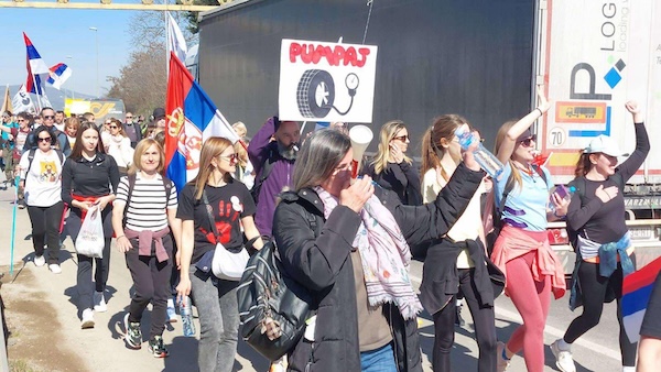 – Trenutno smo u Brđanskoj klisuri. Sve protiče u najboljem redu, nema nikakvih problema. Ljudi su vedrog duha, nasmejani, raspoloženi. Niko do sada nije odustao, tako da smo svi na broju i raspoloženi. Iz automobila i kamiona nam sviraju pozdravljaju nas i pružaju podršku.