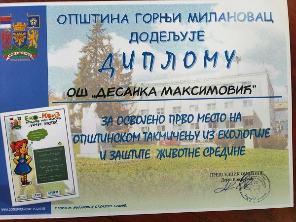 U „EKO – KVIZU“ je učestvovalo svih sedam osnovnih škola sa teritorije Opštine Gornji Milanovac, od kojih je najbolji rezultat ostvarila OŠ „Desanka Maksimović“.