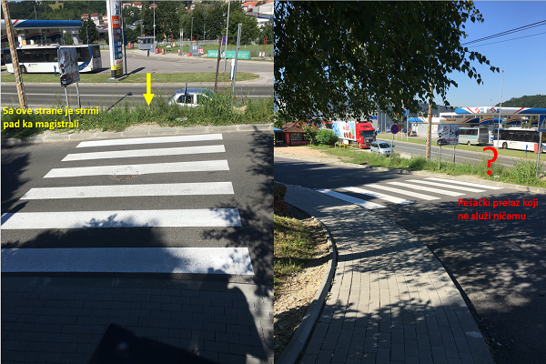 „Počelo je obeležavanje rekonstruisanog Lunjevčkog puta, što je pohvalno. Međutim, jedan pešački prelaz se ističe svojom besmislenošću, a pritom je i nebezbedan za korišćenje,“ stoji u komentaru koji nam je uz fotografije poslao čitalac Đorđe Vučković.