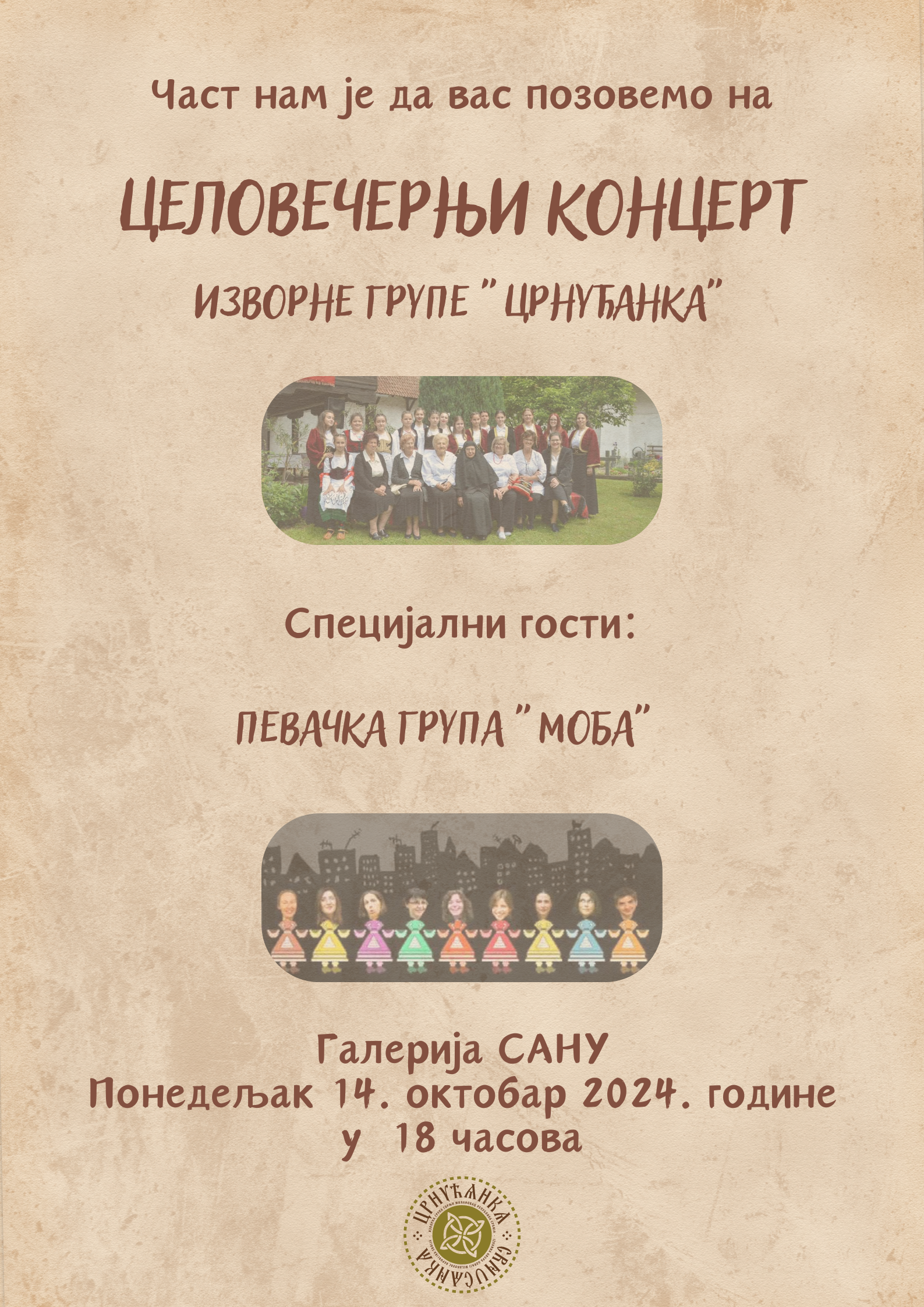 Povodom otvaranja nove koncertne sezone, članice Izvorne grupe „Crnućanka“ će večeras sa početkom u 18 sati održati celovečernji koncert u Galeriji SANU u Beogradu.