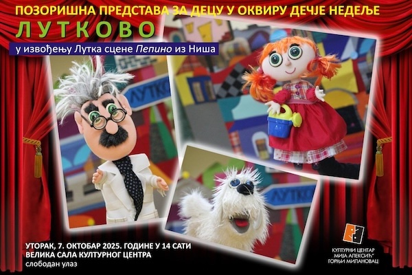 Pozorišna predstava za decu „Lutkovo“ u izvođenju lutka scene “Pepino” iz Niša u utorak, 7. oktobar 2025. godine biće izvedena na velikoj sceni u Gornjem Milanovcu.