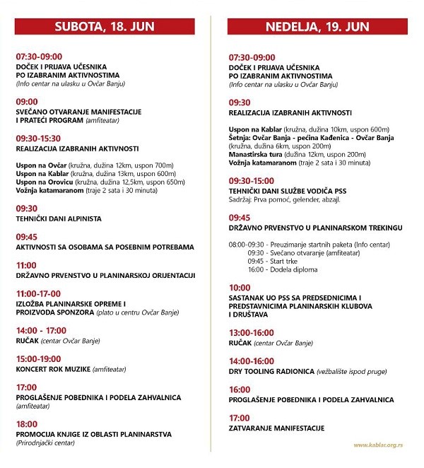Predviđena su brojna događanja, programi i takmičenja na mnogim lokacijama. Kako navode organizatori, za svakoga po nešto, u skladu sa interesovanjima i kondicijom.