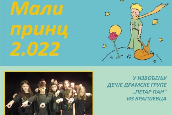 Predstava za decu „Mali princ 2022“ u ponedeljak, 18. aprila 2022. godine od 12:30 sati biće izvedena u velikoj sali Kulturnog centra Gornji Milanovac. Reč je o je scenskoj adaptaciji vanvremenskog dela „Mali princ“ autora A. Egziperija.