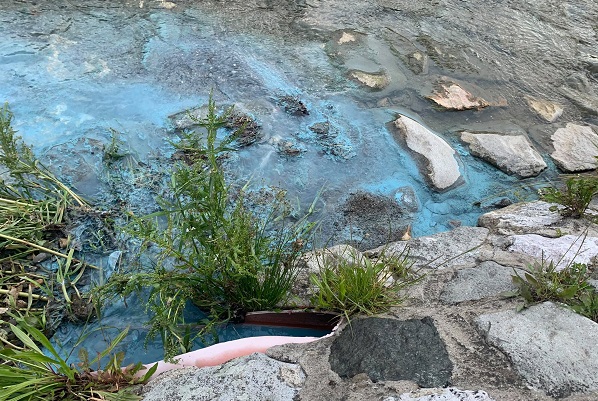 Ta reka juče, oko 17 sati, imala je plavu boju. Naime, u blizini hale „Breza“ uočena je plava tečnost koja se ispušta u reku Despotovicu.