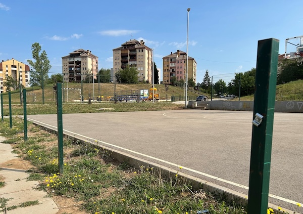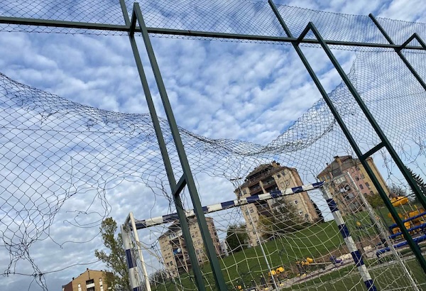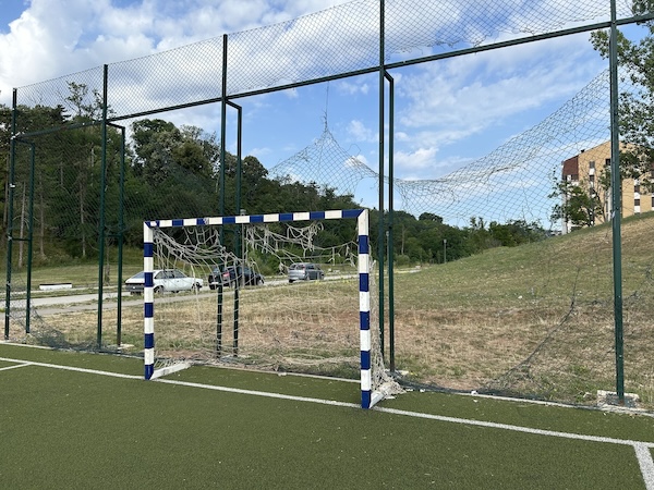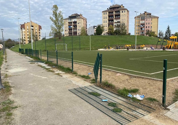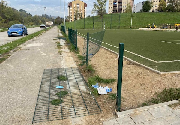 Sa terena za košarku uklonjena je zaštitna ograda, dok je žičana ograda oko terena sa veštačkom podlogom gotovo u potpunosti uništena.