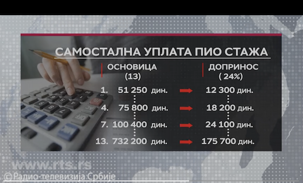 Dolazak do državne penzije bez dana radnog staža u nekom sistemu ili preduzeću moguć je ako sami sebi punih 15 godina uplaćujete penzioni doprinos. Trenutno oko 22 hiljade građana samostalno uplaćuje doprinose. To je za trećinu manje nego pre deceniju i po, kada je veliki broj radnika zbog privatizacije i stečaja ostajao bez posla.