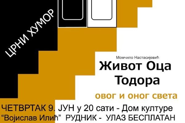 U okviru projekta NASTeatra “Nastasijević dostupan svima”, koji je delimično podržan od opštine Gornji Milanovac, predstava „Život oca Todora“ u kojoj glavne uloge tumače naš sugrađanin Ivan Perković i Aleksandar Ristanović, u četvrtak, 9. juna 2022. godine. biće izvedena u Domu kulture „Vojislav Ilić“ na Rudniku.