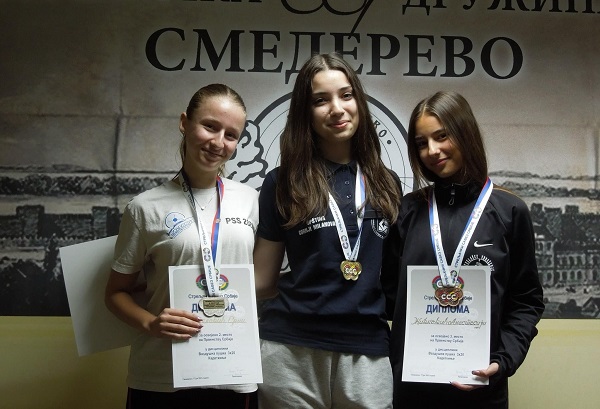 Ženska ekipa družine „Dragan Jevtić Škepo“ je u vrlo izjednačenomm timskom nadmetanju kadetkinja odnela zlato, srebro je pripalo Novom Sadu 1790, a bronza Smederevu. (Anđelija Stevanović, Una Minić, Dragana Jovanović)