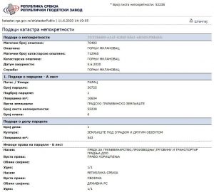 „AR gradnja“ se u Katastru nepokretnosti vodi da ima pravo korišćenja na ovoj parceli u Nevadama, dok je parcela u svojini Republike Srbije, a upisana je kao gradsko građevinsko zemljište.