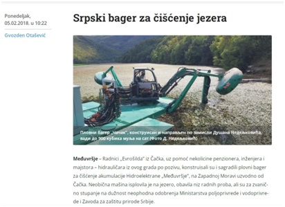 Zanimljiv je podatak da su još 2018. godine radnici „Evrošilda” iz Čačka, uz pomoć nekolicine penzionera, inženjera i majstora – hidrauličara konstruisali i sagradili plovni bager za čišćenje akumulacije. Po pisanju Politike, od 02.02.2018. godine, “neobična mašina isplovila je na jezero, obavila niz radnih proba, ali su za zvanično stupanje na dužnost neophodna odobrenja Ministarstva poljoprivrede i vodoprivrede i Zavoda za zaštitu prirode Srbije“.