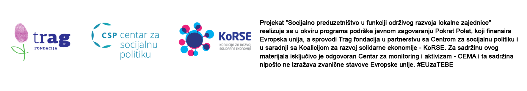 - subjekti civilnog sektora, odnosno domaća pravna lica koja nisu osnovana u cilju sticanja dobiti, a naročito udruženja, udruženja u oblasti sporta, fondacije i druga pravna lica, koja po svom pravnom položaju mogu ispuniti uslove koji su Zakonom propisani za sticanje statusa socijalnog preduzetništva.