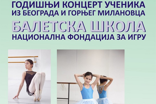 U cilju promocije baleta kao teatarskog oblika umetničke igru u ponedeljak, 19. juna 2023. godine u velikoj sali Kulturnog centra biće organizovan godišnji koncert učenika iz Beograda i Gornjeg Milanovca Baletske škole Nacionalne fondacije za igru, koju je pokrenuja Aja Jung.