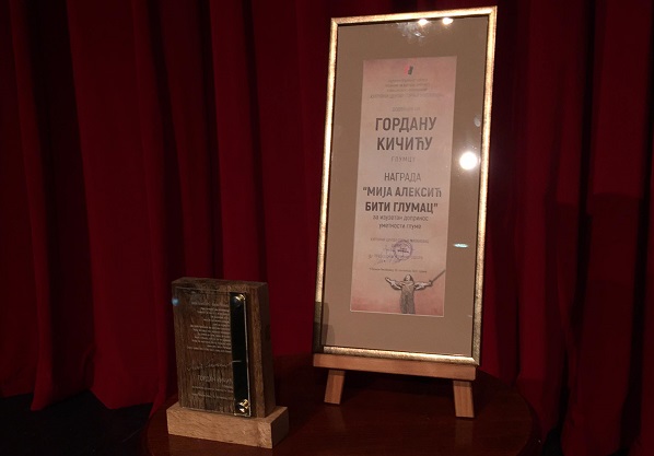 Gordanu Kičiću, srpskom glumcu, producentu i reditelju uručena je nagrada “Mija Aleksić – Biti glumac“. Ovo je odluka Nenada Jezdića i Nebojše Dugalića, dosadašnjih laureata nagrade i Upravnog odbora Kulturnog centra.
