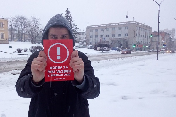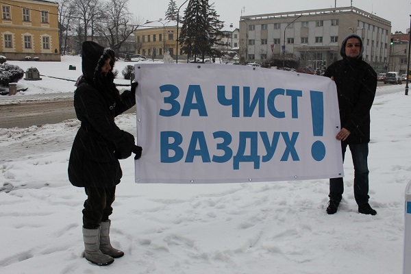 Par aktivista tog udruženja sa transparentom za čistiji vazduh, traži konkretne i hitne mere za rešavanje ovog problema i zahtevaju od nadležnih da se pozabave ovim problemom.