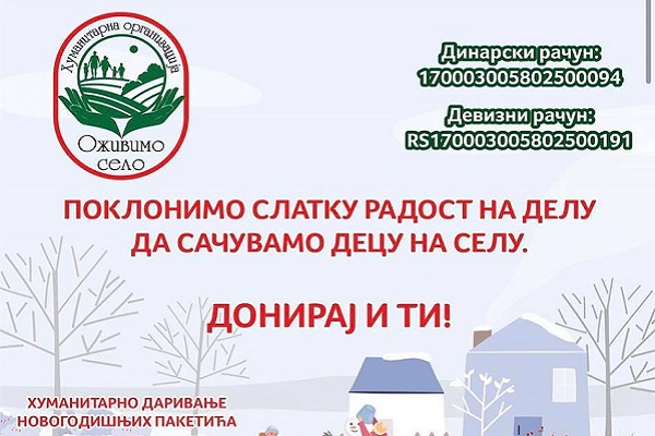 Humanitarna organizacija „Oživimo selo“ u okviru svog projekta organizuje dodelu novogodišnjih paketića deci u ugroženim seoskim porodicama.