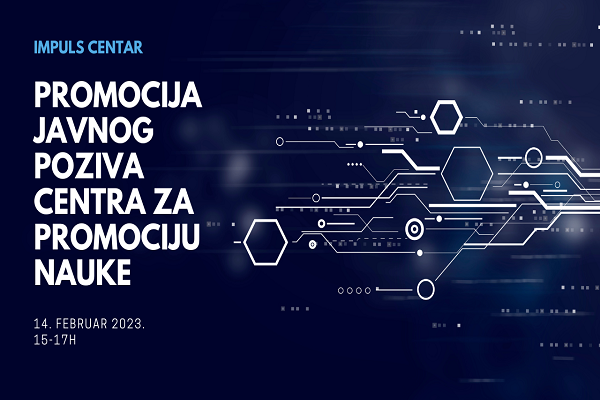 Naime, u utorak 14. februara, od 15 do 17 sati, u prostorijama Impuls centra biće održano dvosatno predstavljanje Centra za promociju nauke kao i njihov rad i planovi za ovu godinu. Biće reči o javnom pozivu centra koji će biti objavljen istog dana, ali ovo predstavljanje će uključiti i obuku o naučnoj komunikaciji i o samom prijavljivanju na konkurs.