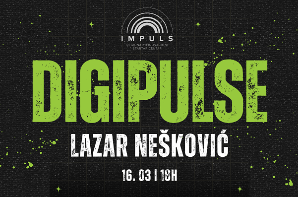 Prvi gost Impuls meetup DigiPulse serije biće Lazar Nešković iz Gornjeg Milanovca, koji će podeliti svoju priču o putu ka karijeri u IT industriji, kao i kako njegovo iskustvo i trud utiču na njegov dalji razvoj.