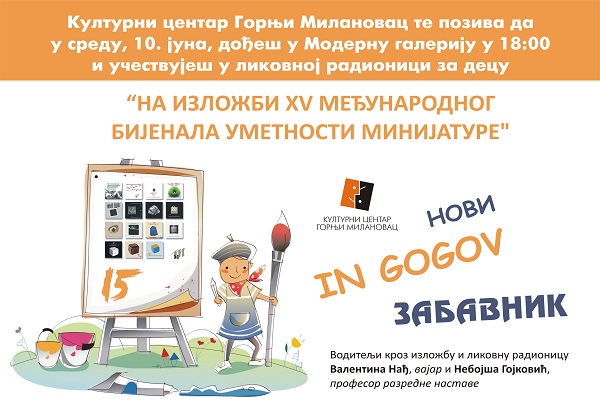 Kulturni centar Gornji Milanovac organizuje u sredu, 10. juna 2020. godine u Modernoj galeriji u okviru postavke 15. Međunarodnog bijenala umetnosti minijature, likovnu radionicu za decu.