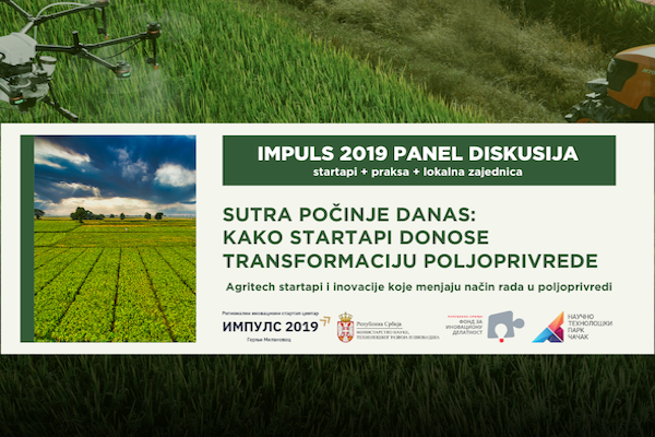 Poljoprivreda se ubrzano menja, a pitanje primene inovacija na gazdinstvima postaje jedno od ključnih izazova savremene proizvodnje. Tim povodom, Regionalni inovacioni startap centar Impuls 2019 organizuje panel diskusiju pod nazivom „Sutra počinje danas: kako startapi donose transformaciju poljoprivrede“, koja će biti održana u ponedeljak, 29. decembra, sa početkom u 10 časova, u prostorijama Impuls centra, u ulici Velimira Rajića 42 u Gornjem Milanovcu.
