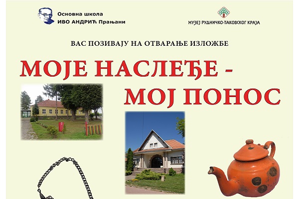 U OŠ ,,Ivo Andrić“ u Pranjanima, u četvrtak, 21. 12. 2023. godine u 13 časova, biće otvorena izložba ,,Moje nasleđe – moj ponos“ koju su realizovali đaci iz škole u Pranjanima i Kamenici u saradnji sa Muzejom rudničko-takovskog kraja.