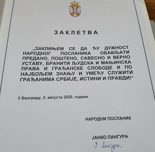 „Izborom za narodnog poslanika ukazana mi je velika čast i odgovornost prema građanima Srbije. Trudiću se da opravdam ukazano poverenje na najbolji način. Živela Srbija! Za našu decu,“ objavio je uz fotografiju i svoj komentar Janko Langura na svom Facebook profilu.