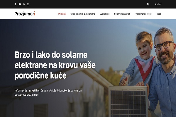 Na portalu prozjumer.rs se mogu pronaći tekstovi i ilustracije koje približavaju koncept proizvodnje električne energije za sopstvene potrebe, princip neto-merenja, način rada i potrebna oprema za solarne elektrane, pregled aktuelnih subvencija za izgradnju, planiranje i određivanje veličine elektrane, procedura izgradnje i priključenja, potrebna prateća dokumentacija, kao i brojne druge informacije važne za uspešno i isplativo korišćenje energije Sunca u domaćinstvu.