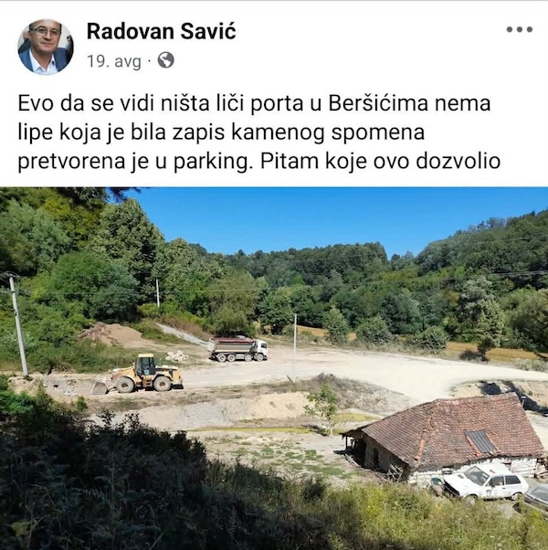Predsednik MZ Beršići, Živojin D. Vasović potvrđuje da je Porta pretvorena u parking i naglašava da je bio nemoćan po tom pitanju. Pitao je nadležne u opštini, kaže, i dobio odgovor da je u pitanju izvlačenje kamena za potrebe izgradnje auto-puta.