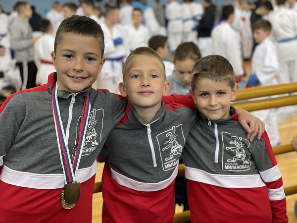 Osvajači srebrnih medalja su Vuk Brković, Jasmina Jovičić i Pavle Kovačević u katama.