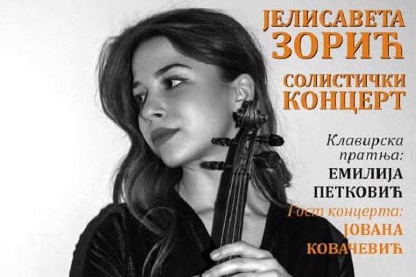 Jelisaveta Zorić violinistkinja iz Gornjeg Milanovca održaće u petak, 8. jula 2022. godine u holu velike sale Kulturnog centra solistički koncert.