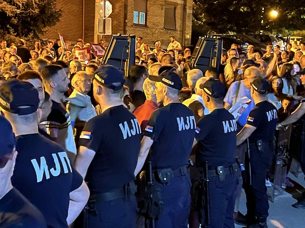 Policiji je u međuvremenu stiglo pojačanje, pa je kordon sačinjavao dva reda pripadnika MUP-a, dok je nekoliko policajaca bilo raspoređeno i pored reke.