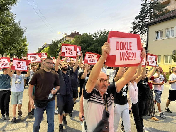 Poziv na okupljanje upućen je tokom dana preko društvenih mreža, a protest je treći po redu ove sedmice. Održan je pod sloganom „Nema vode, decu prebijaju, gaze ustav i zakone“, a prema proceni, večeras se okupio veći broj građana nego prethodne večeri.