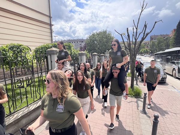 Vesela kolona maturanata milanovačke Gimnazije, prošetala je do Trga kneza Mihaila, a na sebi su nosili majice sa natpisom odeljenja.