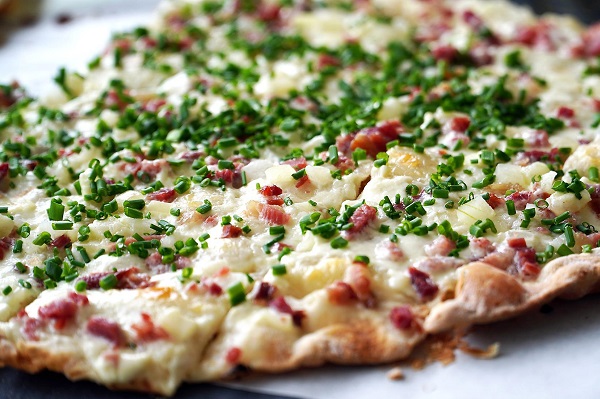 Pripremiti okrugli pleh za tart. Dovoljno je da ga samo malo pospete brašnom. Testo rastanjite tanko u krug, tako da bude veći od prečnika pleha.