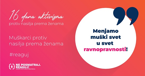 Znamo da u patrijahalnom okruženju muškarci, od rođenja, trpe pritisak da budu muškarci i dok su živi trpe taj pritisak – budi muško! U današnjem svetu uloga muškaraca je drugačija. Zato pozivamo sve muškarce da se menjaju i da ne budu ti koji misle da mogu fizičkom snagom ili psihološkim maltretiranjem rešiti bilo koji problem u međusobnim odnosima.