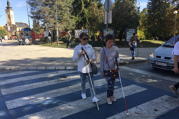 - Ograničene mogućnosti za samostalno kretanje – nedostatak vodiča, nefunkcionalna urbana oprema, neoznačene prepreke na trotoarima.