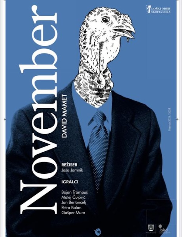 Sada već stari znanci, glumci iz Škofje Loke, opravdali su očekivanja. Uigran ansambl je na, reklo bi se, profesionalnom nivou odigrao jednu od najpopularnijih komedija Dejvida Memeta, “Novembar“. Po roditeljima, jevrejskim emigrantima iz Poljske i Rusije, ne bi se odmah moglo prosuditi o kakvom piscu je reč. Međutim, dobrim poznavaocima svetskih teatarskih zbivanja ovo ime je veoma dobro poznato jer je reč o čoveku koji je dobitnik Pulicerove nagrade.