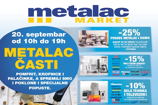 Posetioci će imati priliku da uživaju u ukusnim poslasticama kao što su pomfrit, krofnice i palačinke, koje će se pripremati specijalno za ovu priliku. Pored gastronomskih užitaka, Metalac market je pripremio i poklone i popuste na veliki deo svog asortimana. Ovo je idealna prilika da svoj dom obogatite kvalitetnim proizvodima po izuzetno povoljnim cenama.