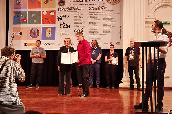 Podsećamo, Mijat je 2005. dobio prvu nagradu glavnog festivalskog konkursa, „Gran Pri“, za strip „Reskjumen“, čiji je lik mnogo narednih godina krasio zgradu SKC-a i bio logo festivala.