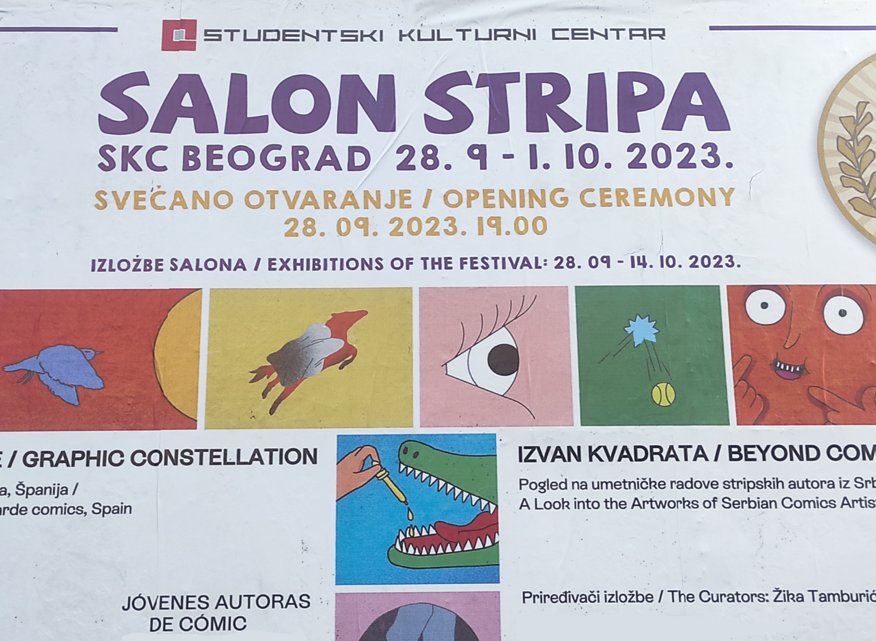 2.IZVAN KVADRATA – POGLED NA UMETNIČKE RADOVE STRIPSKIH AUTORA IZ SRBIJE, koju su priredili Žika Tamburić, Tijana Tamburić, Marko Stojanović. Cilj ove izložbe je da predstavi bogatstva i različitosti umetničkih ostvarenja strip autora. Ona takođe pokazuje kako njihova šira umetnička interesovanja utiču na njihove stripove. Dobitnik specijalnog priznanja za doprinos srpskom stripu ove godine je Darko Perović.