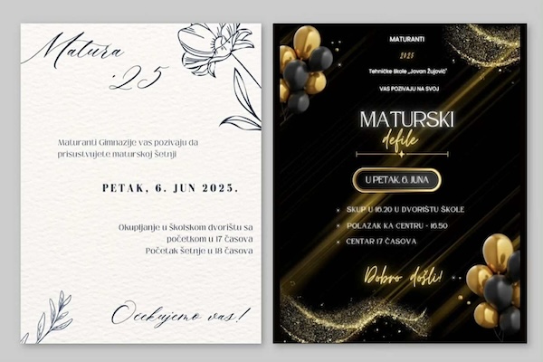Maturanti Gimnazije „Takovski ustanak“ i Tehničke škole „Jovan Žujović“ iz Gornjeg Milanovca pozivaju sugrađane da im se pridruže i uveličaju svečani maturski defile koji će se održati u petak, 6. juna 2025. godine.