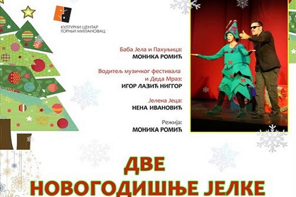 Mini mjuzikl za decu: “Dve novogodišnje jelke”, koji je prema tekstu Radmile Knežević na scenu postavila rediteljka Monika Romić u sredu, 22. decembra 2021. godine biće izveden na velikoj sceni Kulturnog centra u Gornjem Milanovcu.