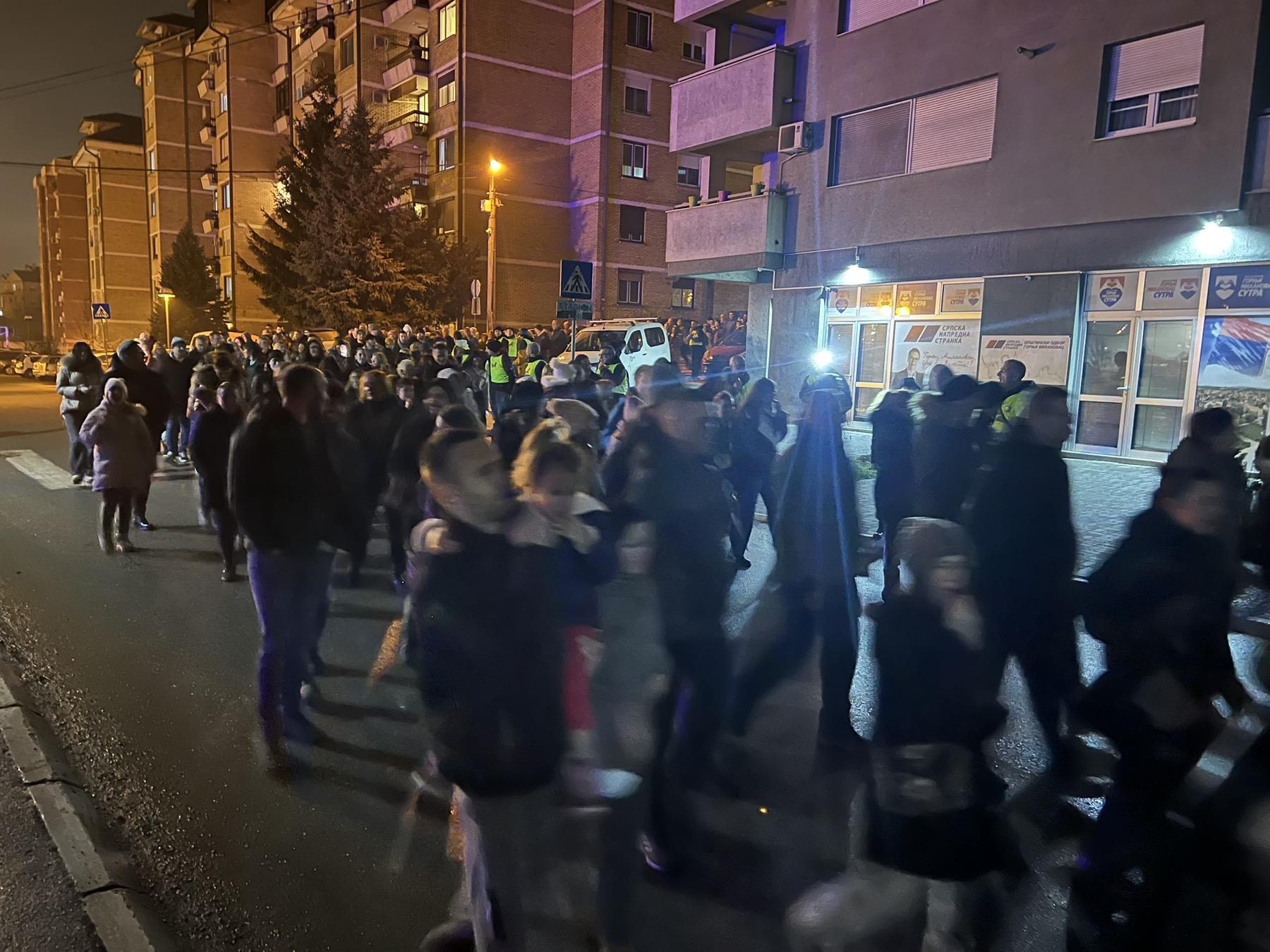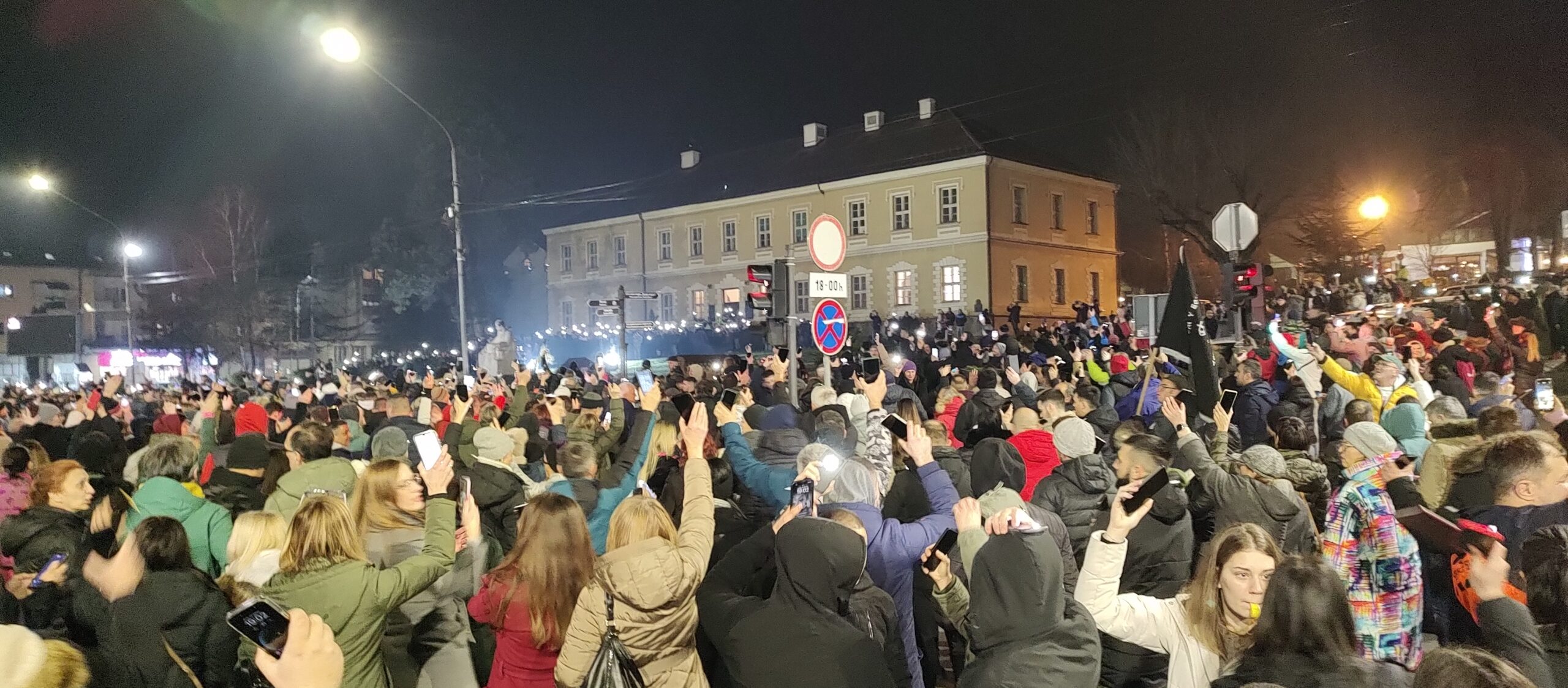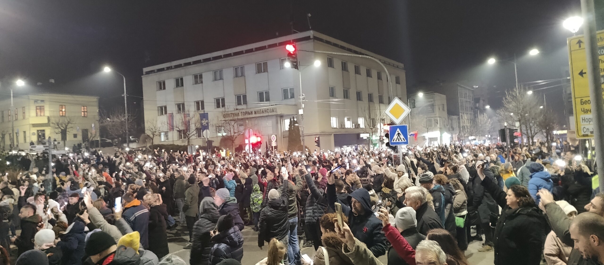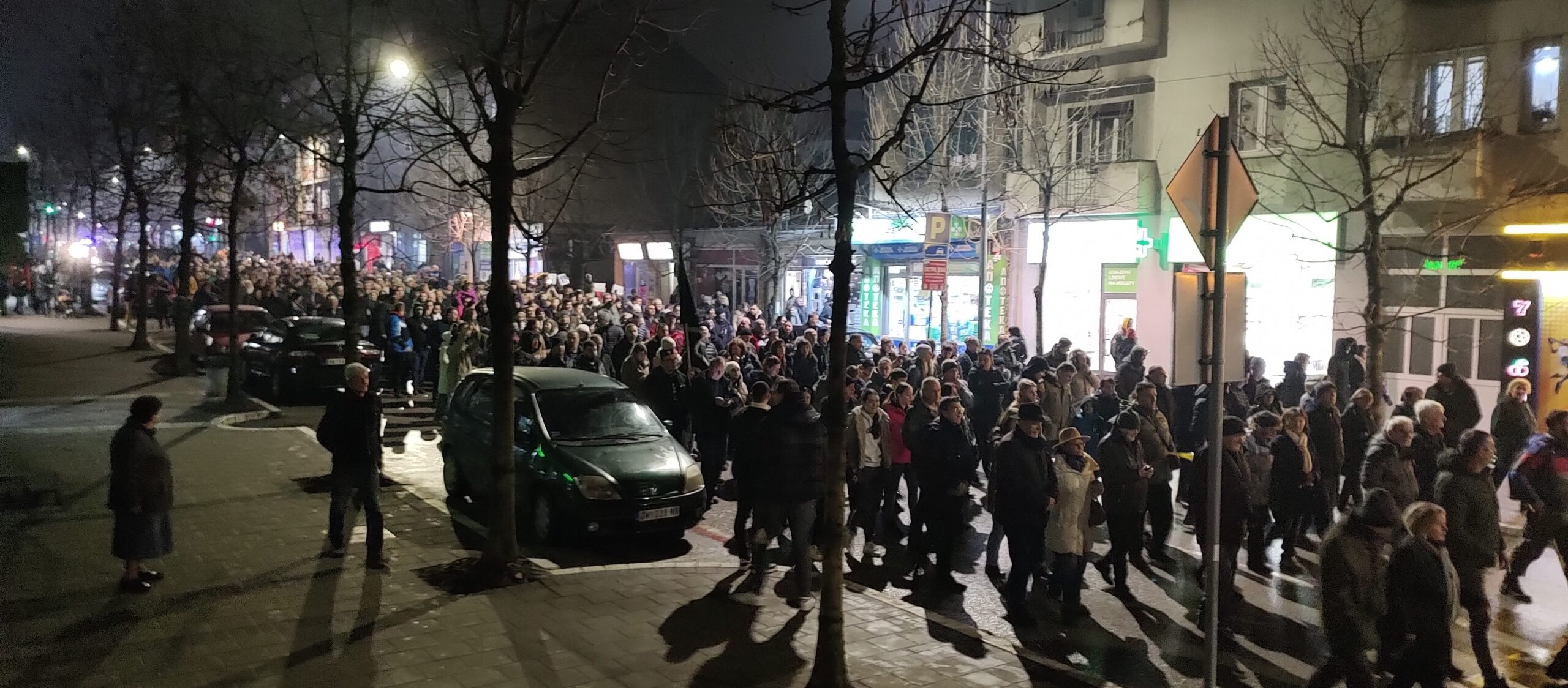 Potom se formirala ogromna kolona, koja je išla glavnom ulicom do „Burenceta“, gde je skrenula ka Železničkoj, upravo pored loklanog sedišta SNS-a. Tu su se čuli najjači povici „Studenti, studenti“, „Vučiću, odlazi“, „Lopovi, lopovi“, kao i pištaljke, vuvuzele. Izašla je zatim ponovo u glavnu ulicu kod starog železničkog mosta, da bi se zadržala pored prostorija opštinskog odbora SPS-a, sa istim porukama i bukom.