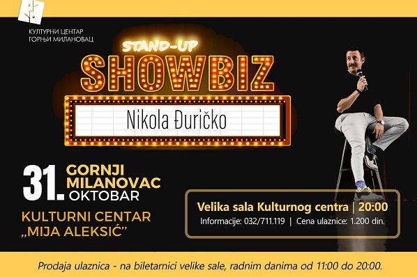 Nakon tri godine od uspešnog stand up-a „Sve što ste hteli da znate o Džoniju a niste smeli nikad da ga pitate”, Nikola Đuričko, proslavljeni srpski glumac spremio je novi program pod nazivom „Show biz” i u okviru velike turneje po gradovima Srbije i regiona u utorak, 31. oktobra 2023. godine nastupiće u velikoj sali Kulturnog centra “Mija Aleksić” u Gornjem Milanovcu.